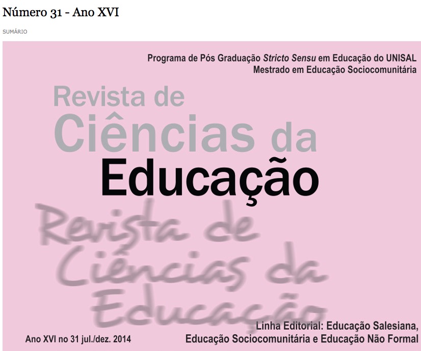 Ivar César Oliveira de Vasconcelos, Geraldo Caliman. In: Revista de Ciências da Educação, v. 16, n. 31, 2014, p. 83-100. Baixar Artigo em PDF